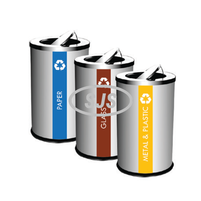 SS106 Stainless Steel Recycle Bin Round c/w Flip Top (3-in-1)